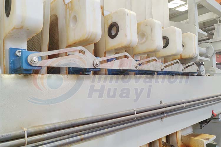 5、泥餅卸落: 濾板自動開啟后,泥餅自動脫落,再通過振打器清理干凈泥餅。